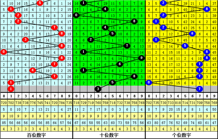 另外,在组选0-9的号码分布中,号码6表现最冷,开出7次;号码2走势最热,开出了16次。本期防号码组26全部轮空。