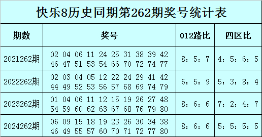 012路比分析:在第262期历史同期开奖中,奖号012路总比为30:22:28,其中1路号码出现较少,0路号码开出较多,去年同期奖号012路比为8:6:6,1、2路号码走势较冷,0路号码表现较热,今年第262期关注012路比6:6:8。
