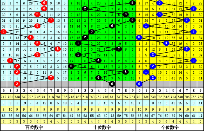 近期个位合数号码出现频率较低,目前走冷3期,本期适当关注合数回补;近期该位小 号明显活跃,目前出现3期,本期继续关注小 号。个位杀号:2348,胆码关注:017。