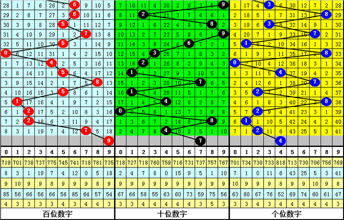 另外,在组选0-9的号码分布中,号码7表现最冷,开出6次;号码9走势最热,开出了15次。本期预计号码组79中落号,参考号码79。